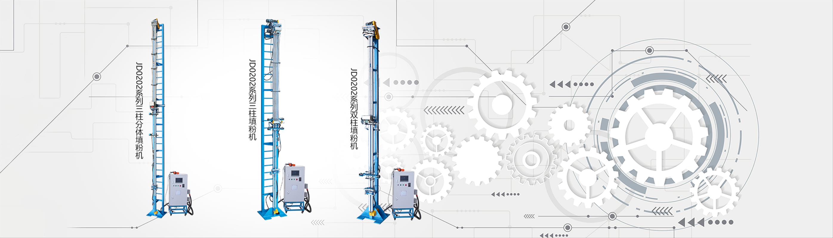 JD0202W系列雙柱無塵填粉機,主要用于電熱管行業氧化鎂粉的填充作業工序;